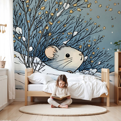 KidsWallTransformez la chambre de votre enfant en un refuge hivernal féerique avec ce papier peint pour enfants représentant une adorable souris contemplan...