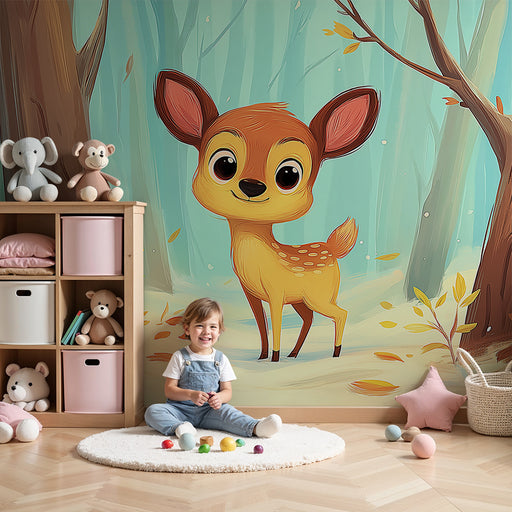 KidsWallRedessinez la chambre de votre bébé en un lieu trop mignon avec ce papier peint pour bébé délicat. Un adorable faon se tient au milieu d'un champ d...