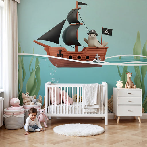 Papier peint chambre enfant | Aventure pirate sous-marine avec un phoque