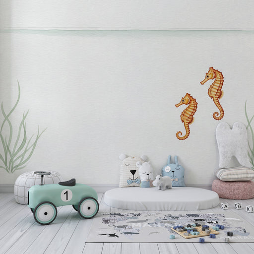 Papier peint chambre bébé | Hippocampes et ambiance marine douce