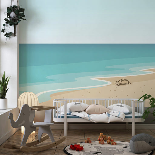 Papier peint chambre bébé | Plage paisible avec tortue marine