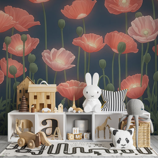 Papier peint chambre bébé | Champs de coquelicots délicats