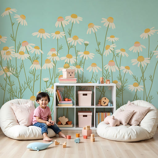Papier peint chambre bébé | Champs de marguerites en fleurs