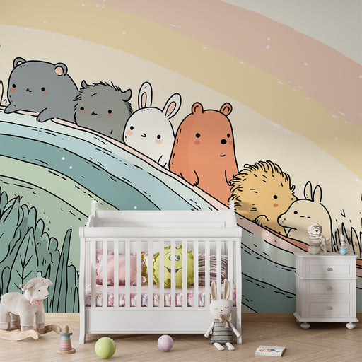 Afficher tous les détailsPapier peint chambre enfant | Animaux mignons sur un arc-en-ciel coloré