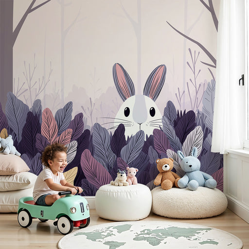 KidsWallTransformez la chambre de votre enfant en un véritable coin de nature avec ce papier peint pour enfants représentant un lapin curieux dans une forê...