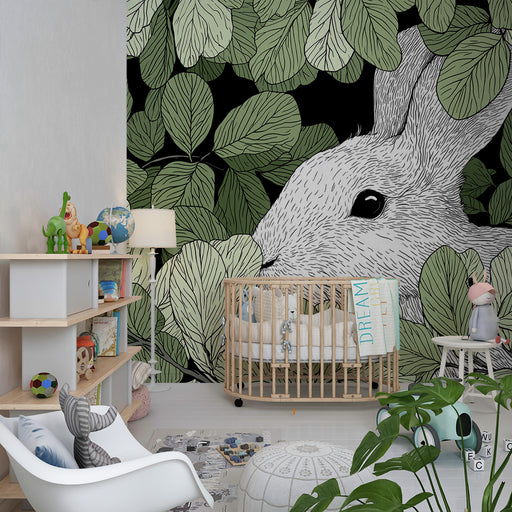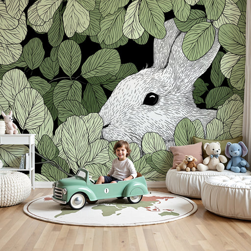 KidsWallTransformez la chambre de votre enfant en un véritable jardin secret avec ce papier peint pour enfants illustrant un adorable lapin se dissimulant ...