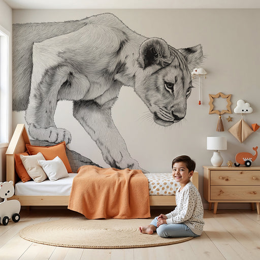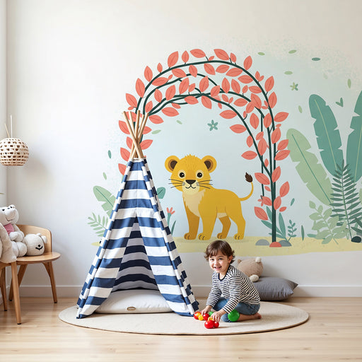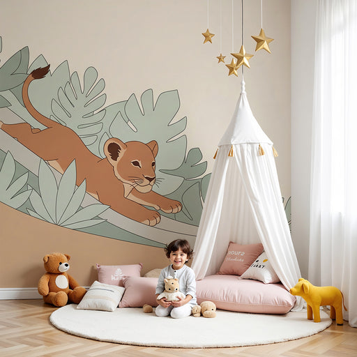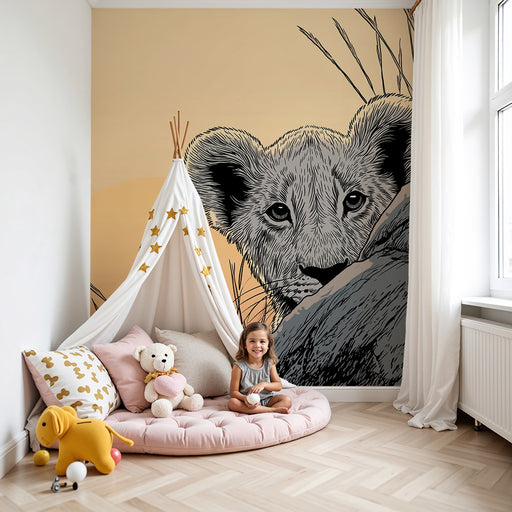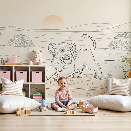 KidsWallTransformez la chambre de votre enfant en un univers ludique et joyeux avec ce papier peint pour enfants mettant en scène un lionceau espiègle et u...