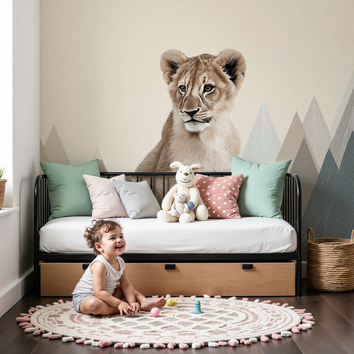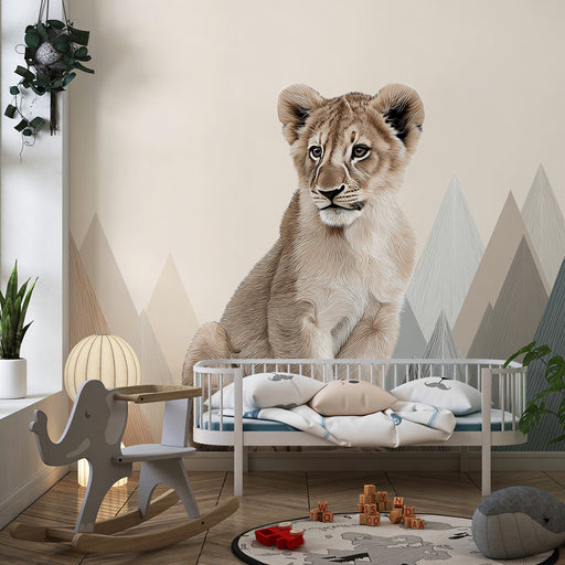 KidsWallAjoutez une touche de douceur et d'émerveillement à la chambre de votre bébé avec ce papier peint pour bébé, représentant un adorable lionceau pais...