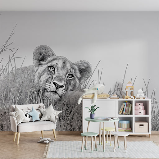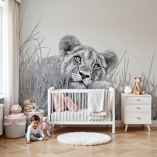 KidsWallPlongez dans l'univers sauvage avec ce papier peint pour enfants mettant en scène de charmants lionceaux émergeant de la savane. Entourés de majest...