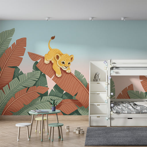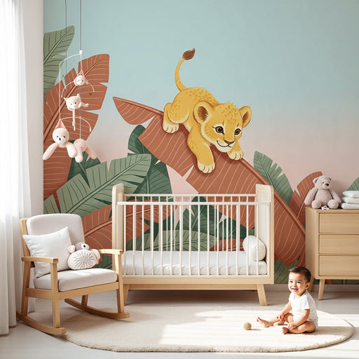 KidsWallTransformez la chambre de votre enfant en un véritable paradis tropical avec ce papier peint pour enfants charmant. Un adorable lionceau, curieux e...