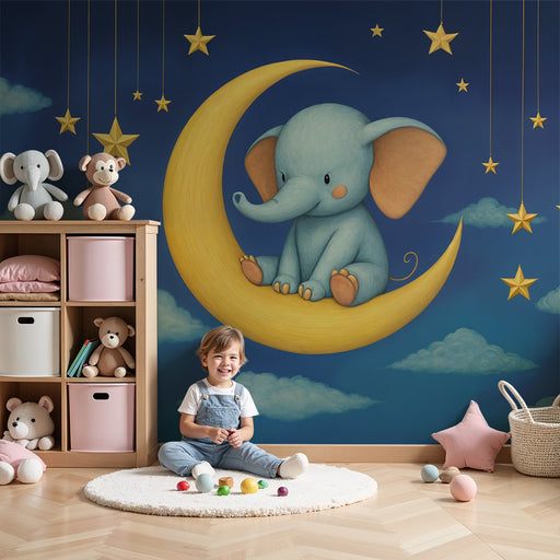Afficher tous les détailsPapier peint éléphant lunaire | Décoration murale enfantine rêveuse