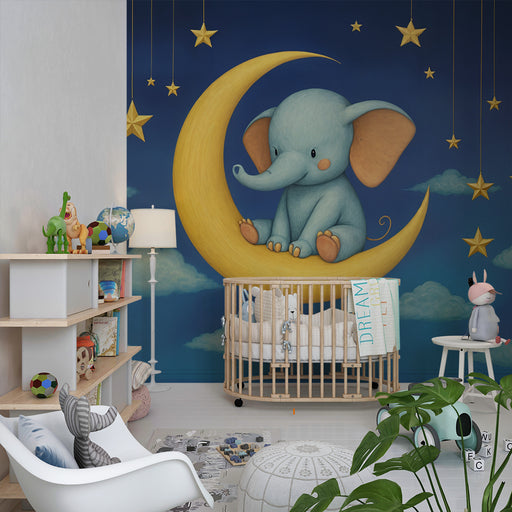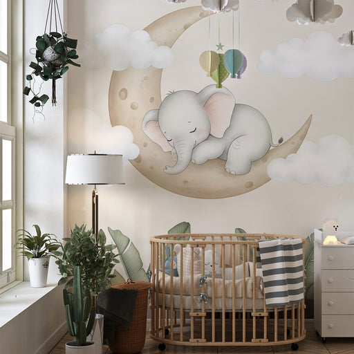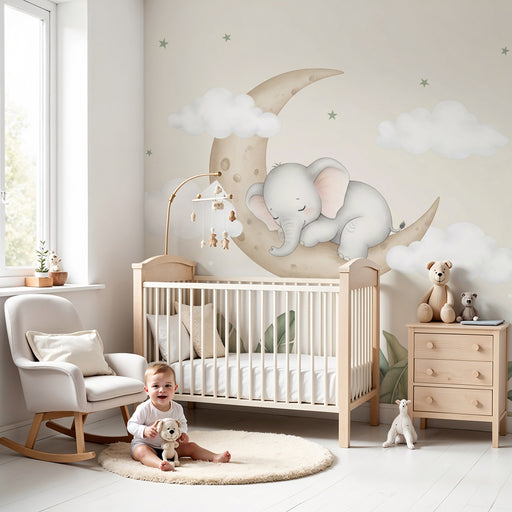 KidsWallTransformez la chambre de votre bébé en un espace cocooning avec ce papier peint pour bébé représentant un adorable éléphant endormi sur un croissa...
