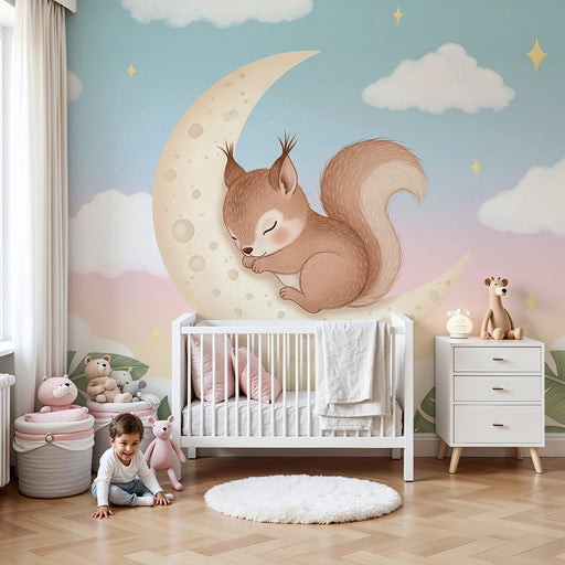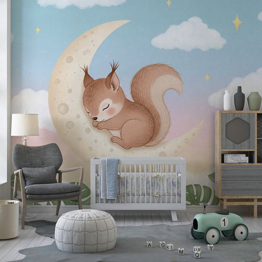 KidsWallTransformez la chambre de votre bébé en un doux rêve avec ce papier peint pour bébé représentant un adorable écureuil paisiblement endormi sur un c...