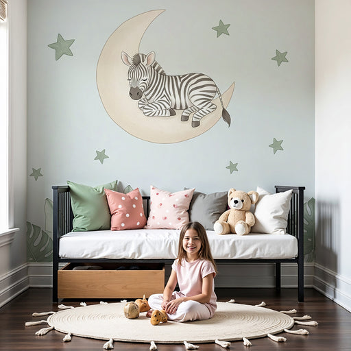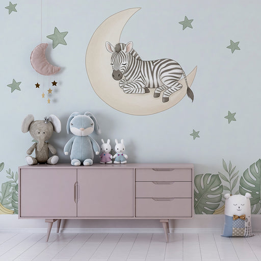 KidsWallTransformez la chambre de votre bébé en un doux cocon avec ce papier peint pour bébé représentant un adorable zèbre endormi sur un croissant de lun...