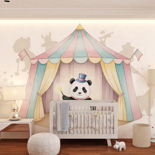 Papier peint chambre enfant | Panda magicien sous le chapiteau