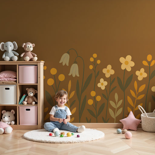 KidsWallTransformez la chambre de votre enfant en un véritable jardin secret avec ce papier peint pour enfants aux motifs floraux élégants. Sur un fond bru...