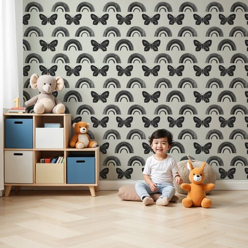 Afficher tous les détailsPapier peint chambre enfant à motifs | Papillons et jolis arcs-en-ciel