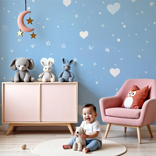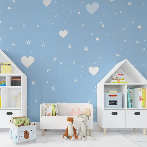 Afficher tous les détailsPapier peint étoiles et cœurs | Fond bleu doux