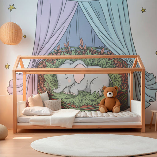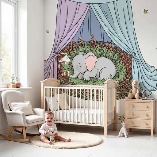 KidsWallTransformez la chambre de votre bébé en un cocon de douceur avec ce papier peint pour bébé représentant un adorable éléphant endormi dans un nid do...