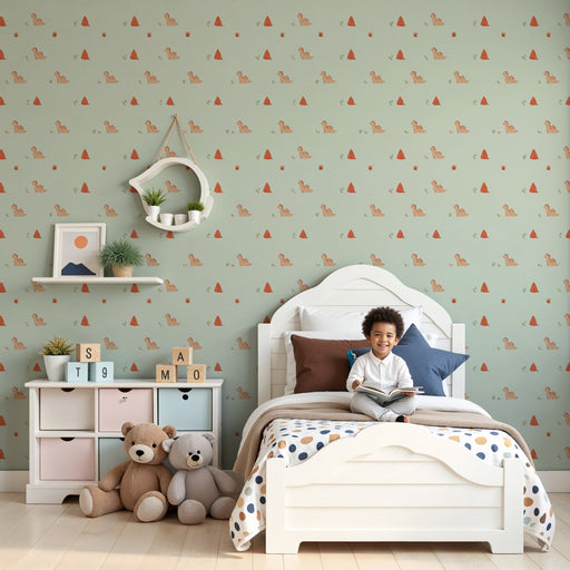 KidsWallTransformez la chambre de votre petit aventurier avec ce papier peint pour chambre d enfant, orné de charmants dinosaures et de sapins délicats. Ch...