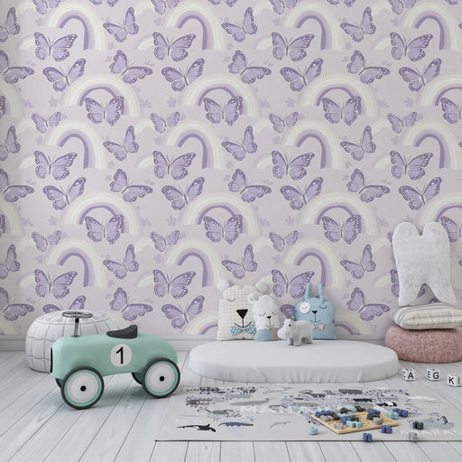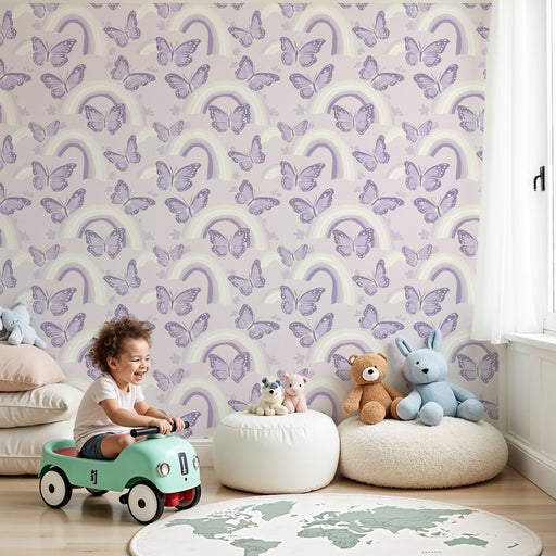 KidsWallTransformez la chambre de votre enfant avec ce papier peint enchanteur mettant en scène de magnifiques papillons violets et des arcs-en-ciel doux. ...