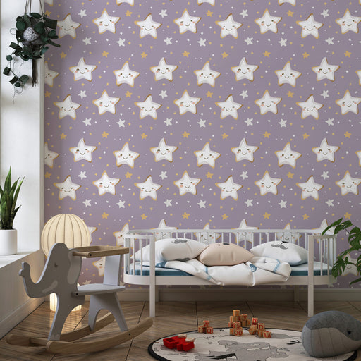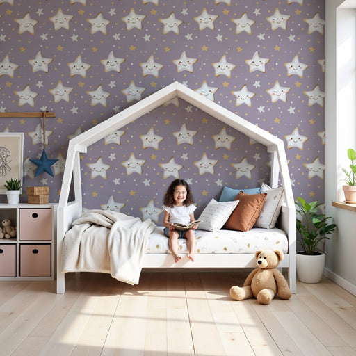 KidsWallTransformez la chambre de votre enfant en un ciel étoilé féerique avec ce papier peint décoratif arborant des étoiles souriantes. Sur un fond viole...