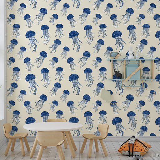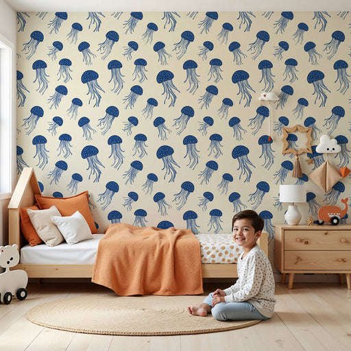 KidsWallOffrez à la chambre de votre enfant une ambiance marine joyeuse avec ce papier peint pour chambre d enfant, rempli de charmantes méduses et de peti...