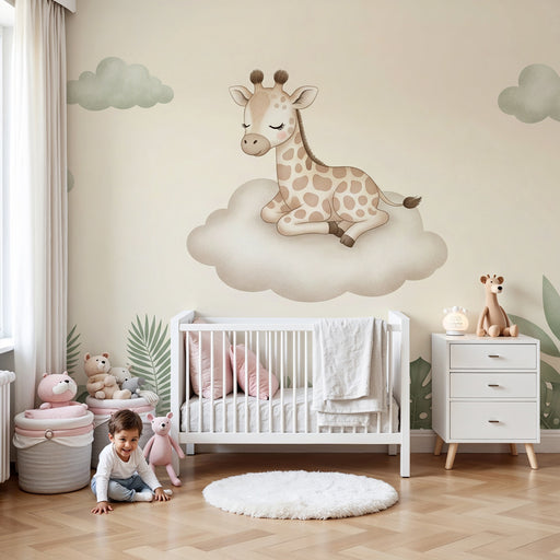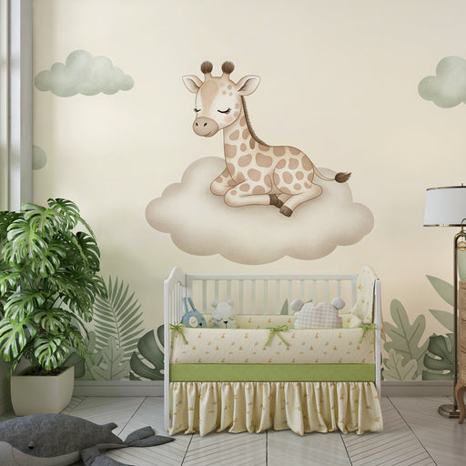 KidsWallTransformez la chambre de votre bébé en un espace doux et serein avec ce papier peint pour bébés illustrant une adorable girafe reposant tranquille...
