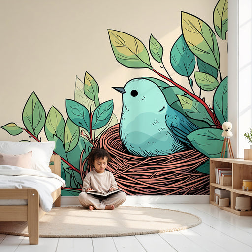 KidsWallCréez un cocon apaisant pour votre bébé avec ce papier peint pour chambre de bébé représentant un adorable oiseau perché dans son nid. Entouré de f...