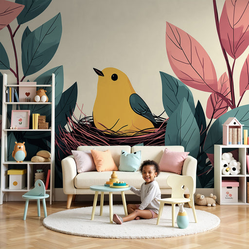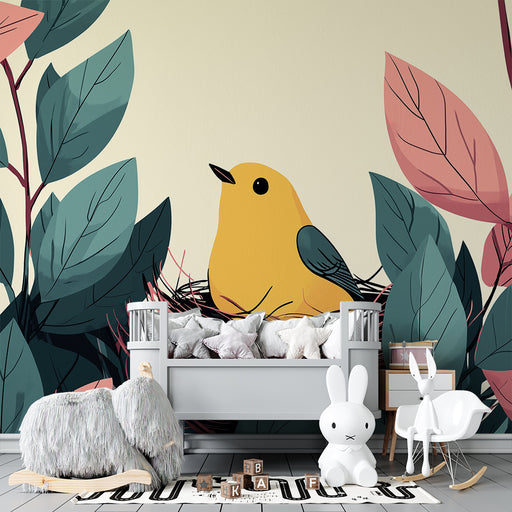 KidsWallCréez un cocon chaleureux et accueillant dans la chambre de votre bébé avec ce papier peint pour bébé représentant un adorable oiseau jaune niché d...