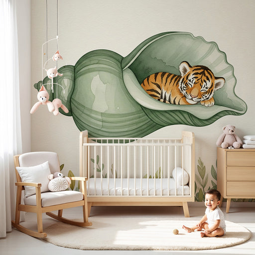 Afficher tous les détailsPapier peint chambre bébé | Tigre endormi dans une coquille
