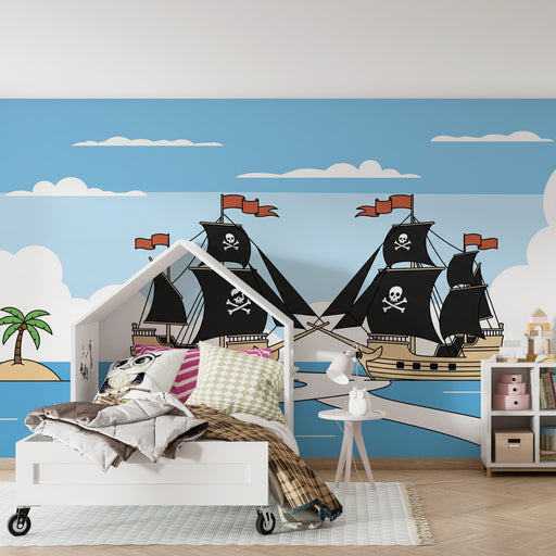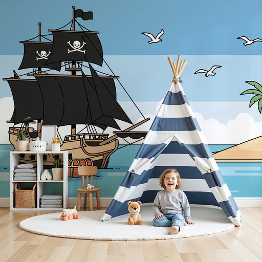 KidsWallEmbarquez pour une aventure maritime avec ce papier peint pour enfants représentant un majestueux navire de pirate ancré près d'une île tropicale. ...