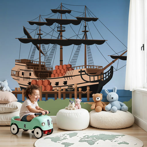 KidsWallEmbarquez pour une grande aventure maritime avec ce papier peint pour enfants représentant un magnifique navire pirate amarré au port. Avec ses voi...