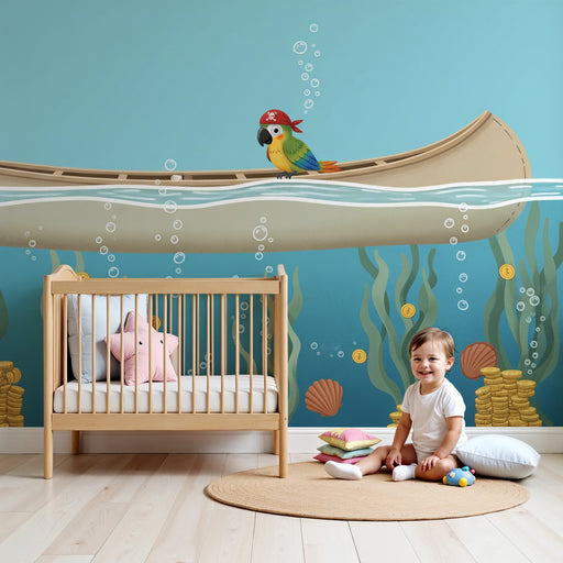 Afficher tous les détailsPapier peint chambre enfant | Aventure sous-marine avec un perroquet pirate