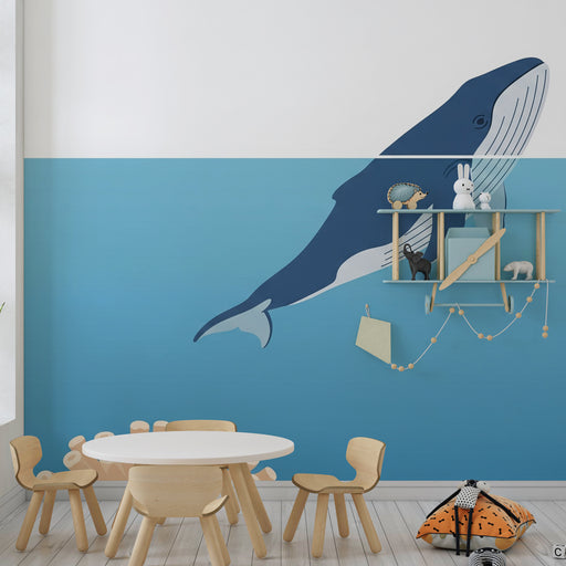 KidsWallPlongez dans l'univers fascinant des océans avec ce papier peint pour enfants représentant une majestueuse baleine nageant gracieusement. Le fond a...