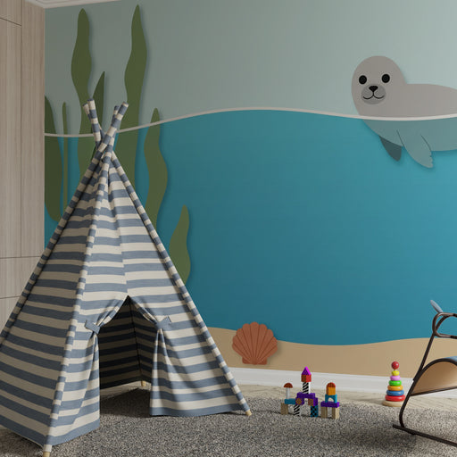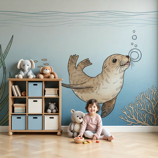 KidsWallTransformez la chambre de votre enfant en un véritable aquarium avec ce papier peint pour enfants charmant mettant en vedette un phoque joyeux nage...