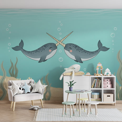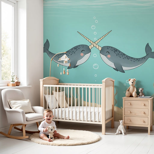 KidsWallPlongez dans le monde aquatique magique avec ce papier peint pour enfants représentant des narvals adorables se jouant sous les vagues. Ces créatur...