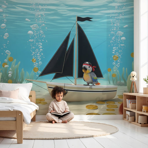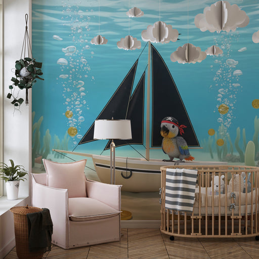 KidsWallPlongez dans un monde d'aventures maritimes avec ce papier peint pour enfants captivant représentant un perroquet pirate naviguant à travers un océ...
