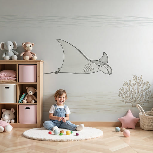 KidsWallPlongez dans un monde sous-marin apaisant avec ce papier peint pour chambre d'enfant mettant en vedette une ray manta majestueuse glissant gracieus...