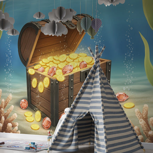 KidsWallPlongez votre enfant dans un univers d'aventure avec ce papier peint pour chambre d'enfant représentant un trésor sous-marin fascinant. Un coffre e...