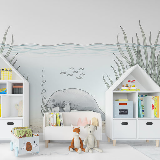 KidsWallPlongez dans l'univers fascinant des fonds marins avec ce papier peint pour enfants représentant un lamantin paisible explorant les herbiers marins...