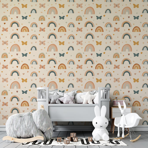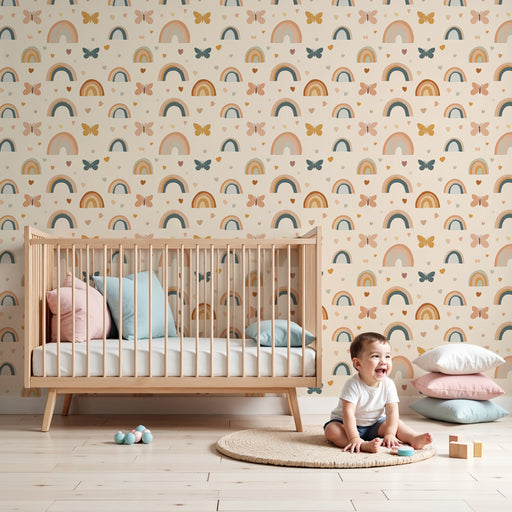 KidsWallRéinventez la chambre de votre enfant en un véritable jardin de rêves avec ce papier peint charmant, orné de délicats arcs-en-ciel et de papillons ...