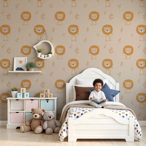 KidsWallTransformez la chambre de votre enfant en un véritable havre de paix avec notre papier peint aux mignons lions illustrés sur un fond pastel. Ce des...