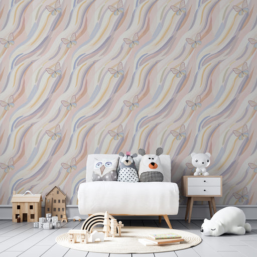 Papier peint chambre enfant à motifs | Papillons délicats sur fond pastel
