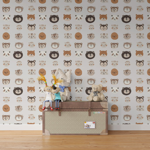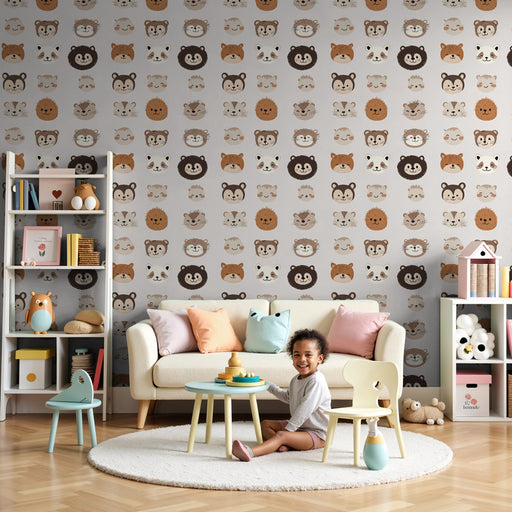 KidsWallTransformez la chambre de votre enfant avec ce papier peint enfant illustré de mignons visages d'animaux. Chaque petite tête d'animal, allant de l'...