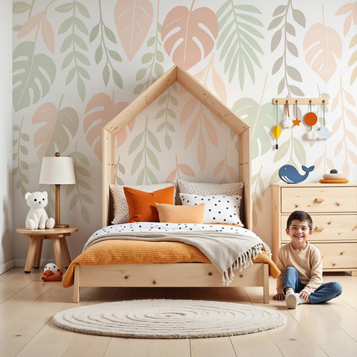 KidsWallApportez une touche de nature apaisante dans la chambre de votre enfant avec ce papier peint pour enfants orné de feuillages délicats dans des tein...