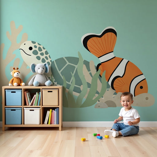 KidsWallEmportez votre petit dans une aventure sous-marine magique grâce à ce papier peint pour chambre d enfant, orné de joyeux poissons clown et de délic...