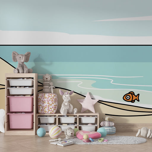 Afficher tous les détailsPapier peint chambre enfant | Plage ensoleillée et poisson amusant