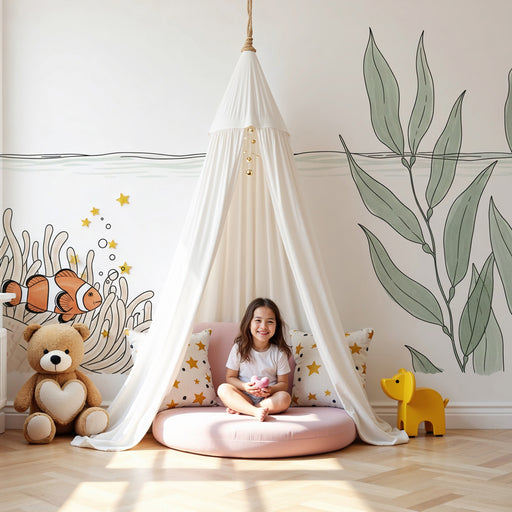 Nos thématiques phares couvrent les besoins réels des familles. La forêt aquarelle et les animaux de bois apaisent les moments de coucher ; les montgolfières et nuages stimulent les rêves d’évasion ; les motifs spatiaux invitent à la curiosité ; les dessins floraux et arc-en-ciel apportent une joie douce. Chaque scène est conçue pour s’intégrer à un coin lecture, un espace jeu ou un lit cabane, sans voler la vedette aux objets qui comptent.