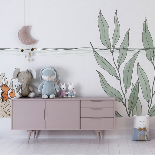 KidsWallPlongez dans un monde aquatique fascinant avec ce papier peint pour enfants qui célèbre la vie marine. Des couleurs douces et apaisantes de bleu tu...